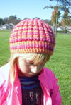 This beret is designed to be knit in two colours to accentuate the textural rib stitch pattern. The pattern instructions for the two-colour version is provided. As shown in the cover samples, this beret can be knit in one colour, or even in a self-striping yarn.
