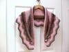 The Sunset Frost is a crescent shaped shawl (with an option to make a shallow triangle). This design features short row shaping, reversible textural stitch patterns and a chevron lace border, that adds a romantic touch to this accessory.