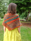 The Altostratus is an asymmetrical triangular shawl that is specifically designed for variegated hand painted yarn paired with a solid or semi-solid yarn in a complementary colour.