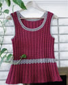 The armholes and neckline are finished with eyelet trims in a contrast colour to complete the look.