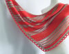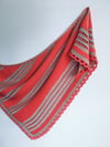 The Coral Reefs shawl is knitted in an asymmetrical triangular shape using yarn in two contrasting colors. Knitting begins at the wide side of the shawl and finishes with a few stitches at the opposite end. The shaping is done with decreases on one edge and increases on the other edge at different rates to reduce the number of stitches as you progress. A slightly curved shape results naturally from the different tension between the edge stitches and the body stitches of the shawl.