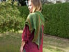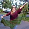 The Forest Veil is a light and airy extra long asymmetrical shawl. This design features a subtly curved shallow shape, jagged edge and decorative horizontal slots at the bind-off end.