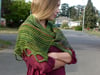 The shawl is knit sideways starting with a small number of cast-on stitches. It widens slightly from the cast-on end toward the bind-off end by working simultaneous increases at one edge and partial bind-offs spaced at certain intervals at the opposite edge of the fabric. The curve is achieved by naturally created tension of the edge stitches and knitting on the bias.