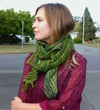 It is designed for gradient yarn paired up with a solid or semi-solid yarn in a complementary or contrast colour. An allover eyelet stitch pattern, when worked in two colours, creates a different colour shading on each side of the shawl.