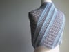 The cowl is worked flat, sideways and on the bias in two alternating colours. Then the ends of the knitted piece are joined together to form a loop.